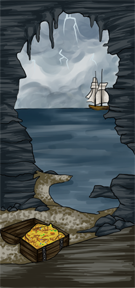 A storm-tossed, angry sea, but look…a glint of gold! Pull yourself ashore, and maybe you’ll unearth ancient treasures – or else just that 1MC I hid away last week.
