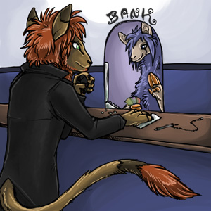 Jasper grinned over at the aetra as his fingers deftly knotted a green, skull-adorned bowtie around his neck. “Lanturnacht is more than half a show, Archie!” He declared with a flourish of his feathered arms, “We need to look the part. Besides,” the jinx’s grin twitched, “you enjoy it. Admit it.”