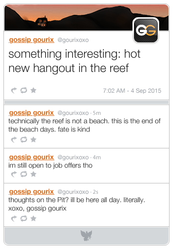 For many citizens of Sango Reef, as the day winds to a close, so too do the constants of their lives. Anemone once more passes through her wares and displays, making sure that there is no accessory left askew, and no mannequin left haggard. She dims the lights slightly so no one will be enticed to enter, before continuing to close up shop.